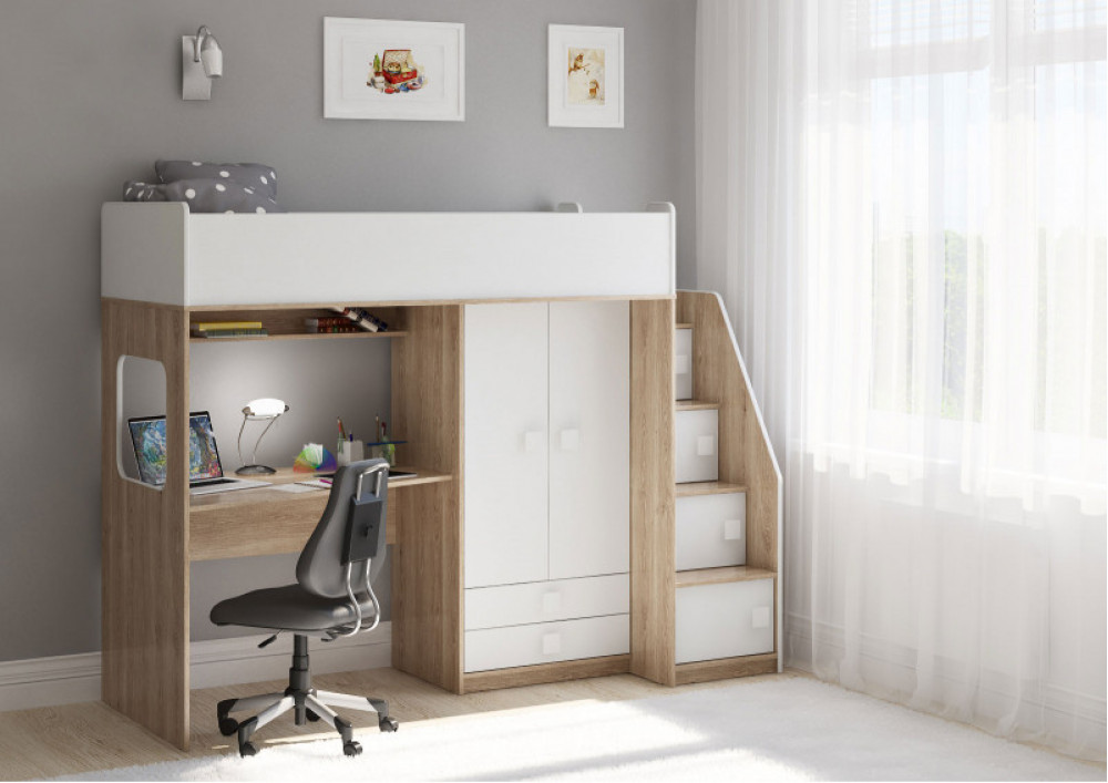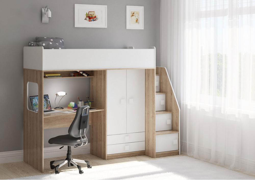 Учебная зона со столом под спальным местом открывает возможности для письменных работ,а также здесь удобно расположить ноутбук.