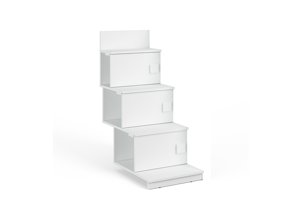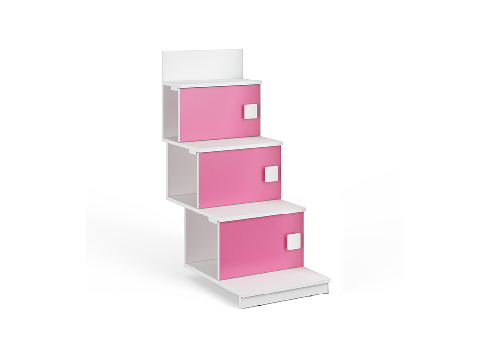 Лестница средней величины из трех ступенек,сочетается с двумя невысокими кроватями-чердаками. Предназначена для установки между двумя кроватями.